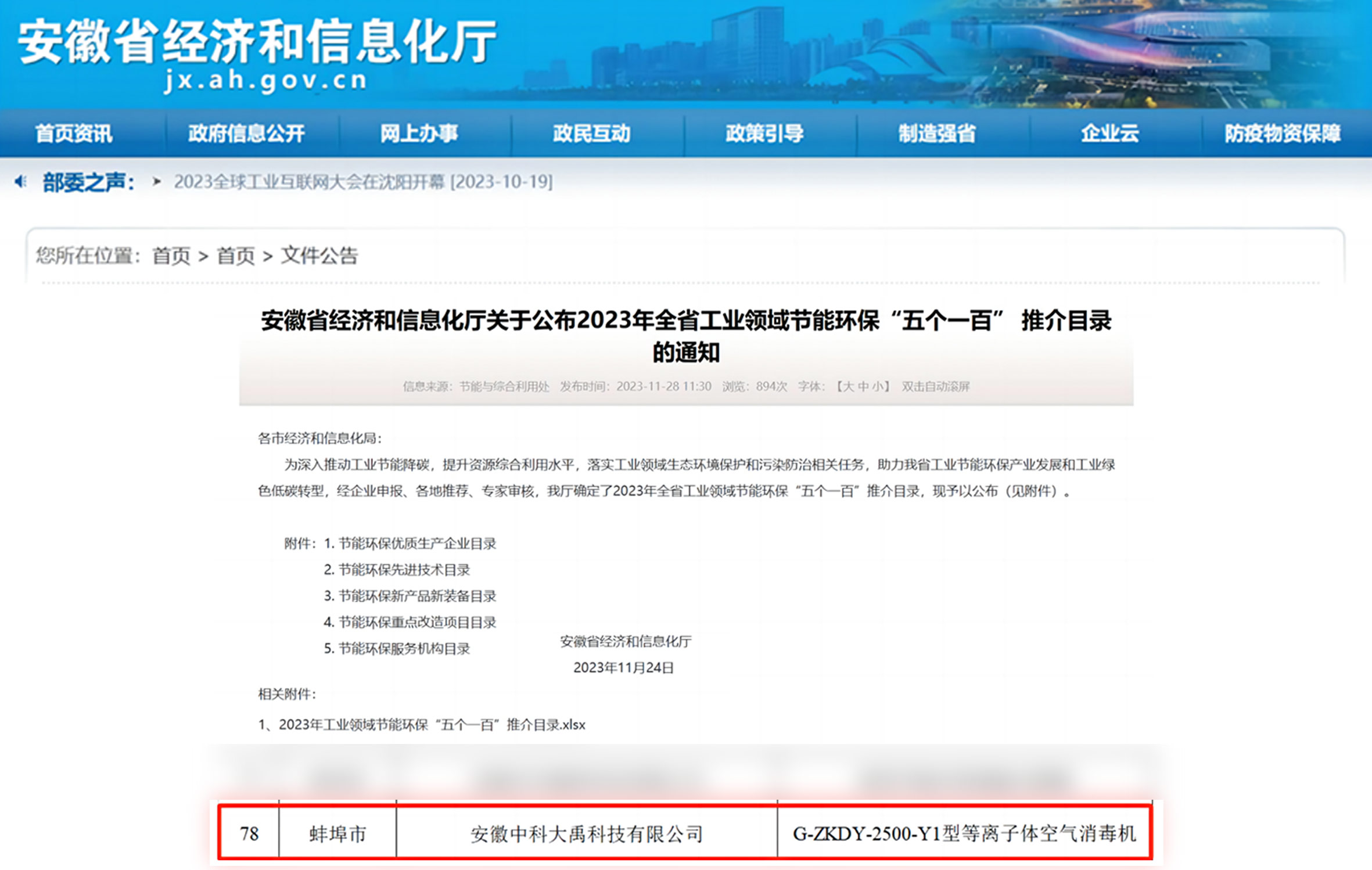 • 評定為2023年度國家知識產權優勢企業 入選2023年安徽省技術創新示范企業名單